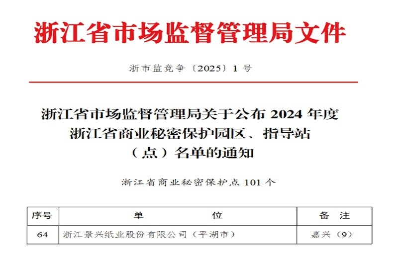 近日,浙江省市场监督管理局揭晓2024年度浙江省商业秘密保护园区、指导站(点)的名单,浙江k1体育股份有限公司凭借其出色的商业秘密保护工作,成功跻身榜单,成为平湖市独揽此殊荣的佼佼者。